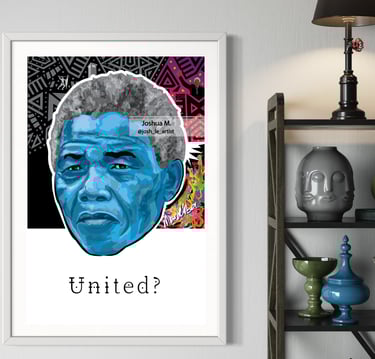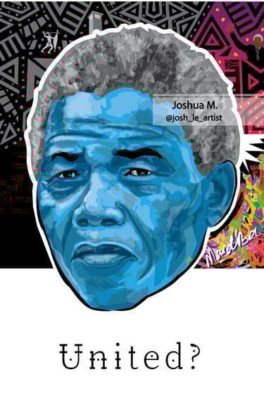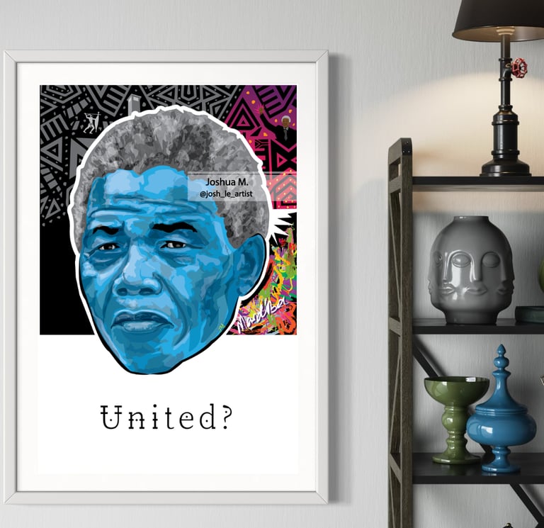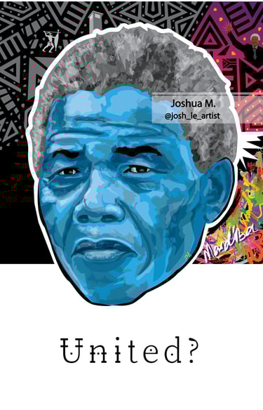 "United?" pays tribute to Nelson Mandela, embodying his unwavering commitment to justice and reconciliation. Every hand-drawn detail portrays Mandela's transformative journey from prisoner to president, symbolizing his dedication to uniting a divided South Africa.