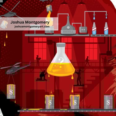 This piece unpacks the cycle of cultural exploitation, tracing how original ideas—rich in history and meaning—are stripped, refined, and sold without acknowledgment. From the extraction of identity to the polished packaging for mass appeal, each element invites viewers to reflect on what’s lost in the pursuit of profit. "Vulture" is both a critique and a call to awareness—a visual reminder of the value of authenticity, the cost of appropriation, and the need to honor the true source of innovation.
